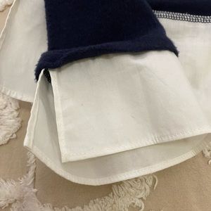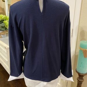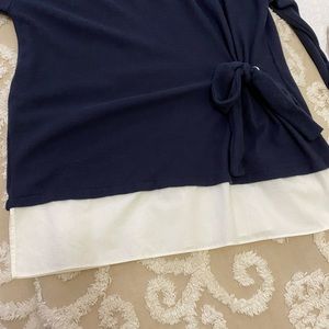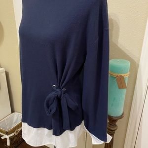 Nice sweater top with attached shirt trim. Side tie accent. Navy. Size UK 12.