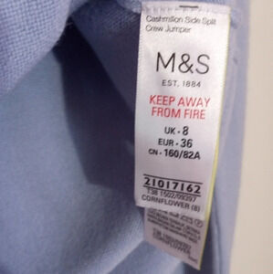 M&S Collection Cornflower blue Cashmillon side split crew jumper women's size 8 in GUC with no flaws noted. This sweater is gorgeous and extremely soft yet lightweight and no pulls or piling.