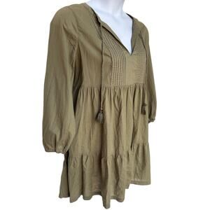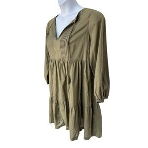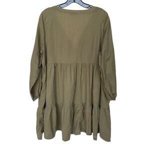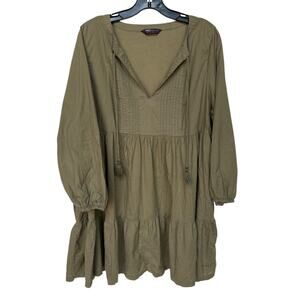 M&S Collection Khaki Green Cotton Voile Babydoll Boho Tiered Tunic Dress size 18