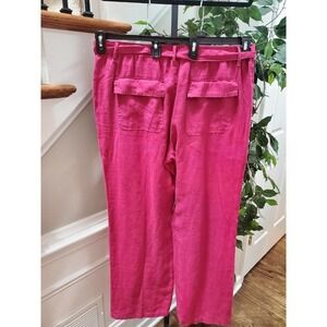 M&S Collection Women Pink 100% Linen Mid Rise Pull On Wide Legs Regular Pants 18