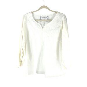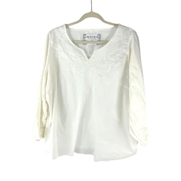 M&S Indigo Collection Embroidered Blouse Size16 Off White Lightweight Cotton Ble