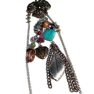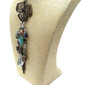 M&S Long Boho Charm Necklace Mixed Metals Colorful Beads Nature-Inspired Dangles