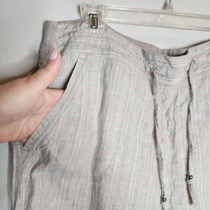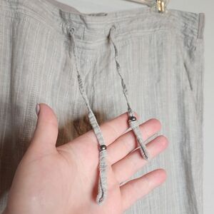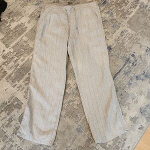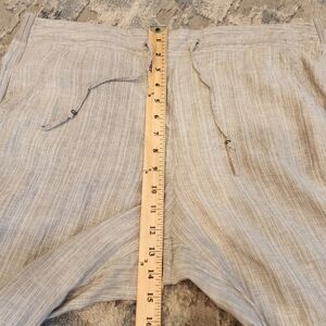 M&S Marks & Spencer love Linen pull on flowy pants. Grey stripe with silver metallic threading. see video for best reference. doesn't translate thru photos.