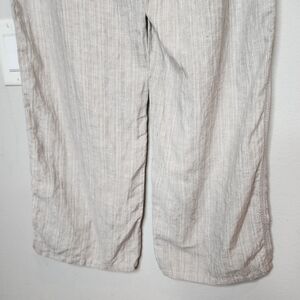 M&S Love Linen Grey Silver Stripe Flowy Pull On Pants. Women's size 12 long.