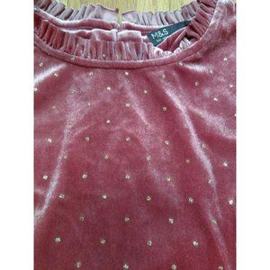 M&S Mark & Spencer Long Sleeve A-line Pink Glittery Velvet Dress 11-12 Youth