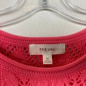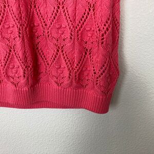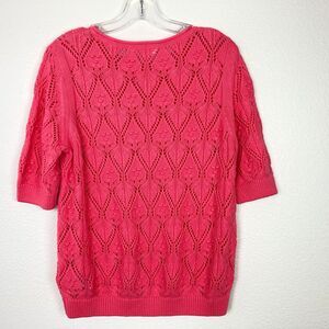M&S Per Una Open Knit Sweater Women's US S UK M Pink Coral Cotton Short Sleeves