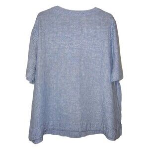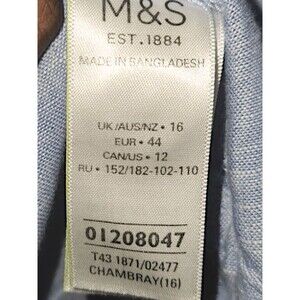 M&S Pure Linen Blue Top Size 12 US / 16 UK Shoulder Button Detail Marks and Spencer