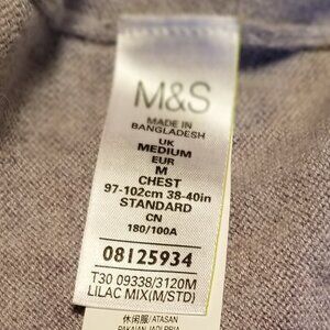 M&S Womens Cashmere Cotton Cable Knit Lavendar V-Neck Fitted Sweater M
