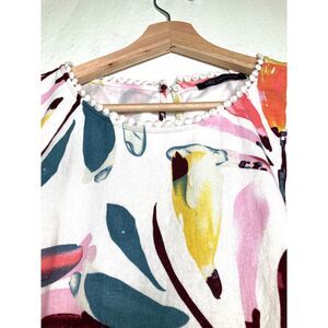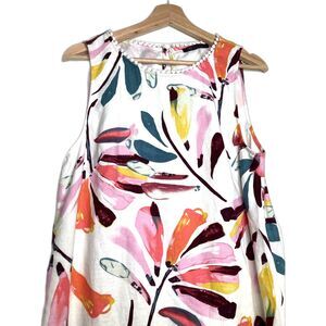 M&S Womens Sheath Dress Multicolor Floral Lined Crew Button Keyhole Pompom 10