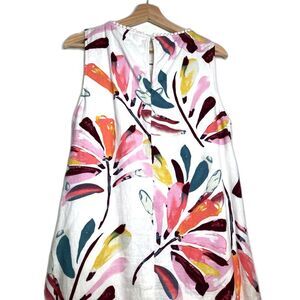 M&S Womens Sheath Dress Multicolor Floral Lined Crew Button Keyhole Pompom