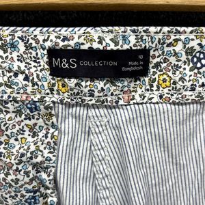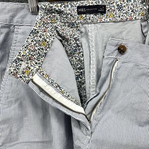 M&S shorts womens 18 blue white stripe Chino cotton blend