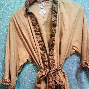 Brand New!! Light weight cotton robe with leopard ruffle trim, tie, and detail. Beautiful!! 🥰