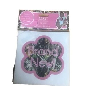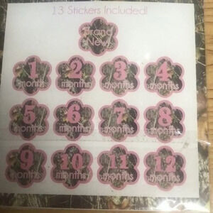 Brand new MSC Mainstreet Collection 1st year photo stickers, perfect for capturing your baby's monthly milestones. These adorable stickers feature a pink camo design, adding a touch of rustic charm to your little one's photos. Ideal for baby showers, newborn photoshoots, or creating a memorable scrapbook.