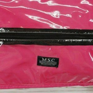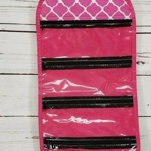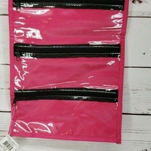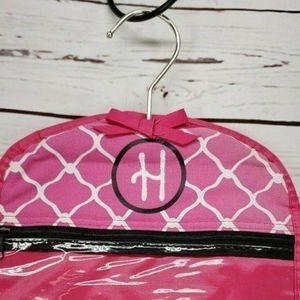 Personalized initial MSC hanging makeup jewelry bag pink with white design on top with letter initial H on it brand new with tags double sided.