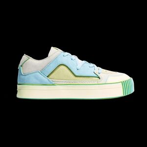 EVERY PART OF THE GOBSTOMPER IS MADE OF 4 LAYERS OF COLORED MATERIAL FROM THE TONGUE TO THE UPPER TO THE SOLE, WHICH REVEAL THEMSELVES AS IT WEARS DOWN, IT FEATURES A SUEDE UPPER AND RUBBERIZED OUTSOLE.