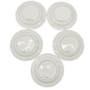 MSE Set Of 5 Lunch Plates 9 inch White With Green Trim Purple Floral Design