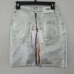 MSGM Coated Metallic Silver Mini Skirt 10 Concert Festival *read*