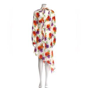 MSGM Floral Silk Crape Asymmetric Dress Size 44/M