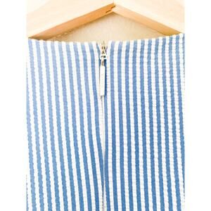 Cute blue/white stripes, bow as a sleeve. Lined.
