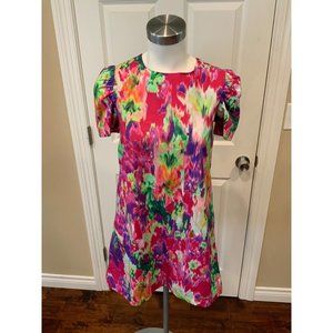 MSGM Girls Pink Floral Watercolor "Popeline" Short Sleeve Dress, Size 12 NWT!