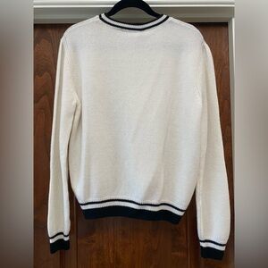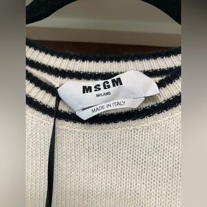 MSGM Milan Wool Cashmere Logo Crewneck Sweater Ivory Black Sz M NWT