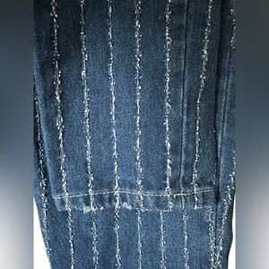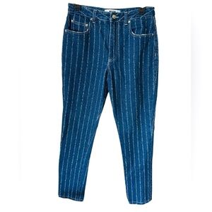 Stylish blue striped jeans perfect for any casual outing. Comfortable fit with a trendy design.