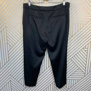 MSGM Black Silky Cropped Dress Pant Trousers. Black textured silky like material allover these classic cropped trousers. Side slant pockets and faux pockets at back. Features a zip with hook and bar closure.