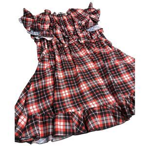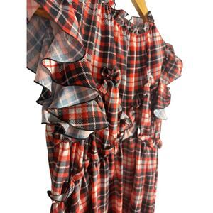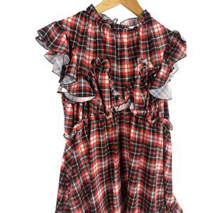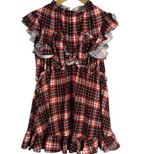 MSGM Milano Designer Sleeveless Ruffle Plaid Mini Dress Red Size 8