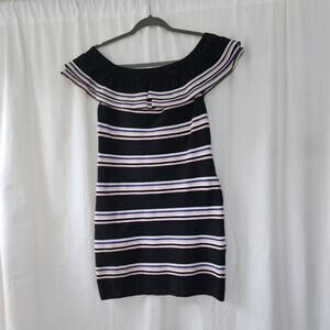 MSGM Milano Striped Knit Mini Off Shoulder Dress M Black White Pink Ruffle Party