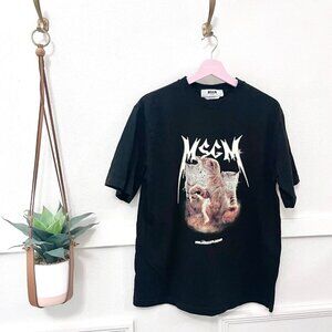 MSGM Milano T-Shirt With Laser Eyed Cat Graphic Black Size M