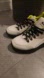 Chic MSGM sneakers in white with bold black soles and laces. Neon green details. Very good condition, slight scuffing on the sides.
