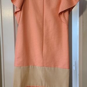Gorgeous luxe quality dress in perfect condition. Peach Brocade. Size eu 38 which is equivalent to US 8, but like a skinny size 8. Reach out for measurements. This dress is really so chic.