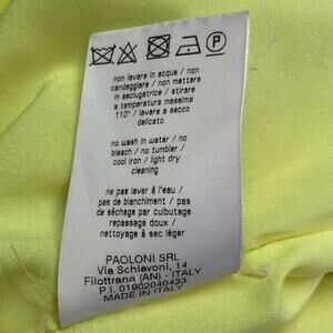 MSGM dress in a yellow polyester featuring a sleeveless design, layered style with back cape panels, and back tie closure. Made in Italy.Very Good Pre-Owned Condition. Multiple snags.Marked: IT 38Measurements:Shoulder: 17.5 in.Bust: 36 in.Waist: 32 in.Hip: 42 in.Length: 33 - 42 in.