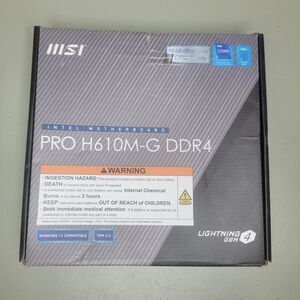 The MSI PRO H610M-G DDR4 motherboard is a high-quality Micro-ATX board that supports Intel's 12th Gen Core processors. With DDR4 memory technology and a sleek black color design, this motherboard is perfect for building a powerful personal computer. Its compact dimensions of 31 x 24.5 x 2 cm make it ideal for smaller build setups, while its brand reputation and reliable performance ensure a smooth and efficient computing experience. Whether you're a seasoned builder or just starting out, the MSI PRO H610M-G DDR4 motherboard is a top choice for your next PC project.