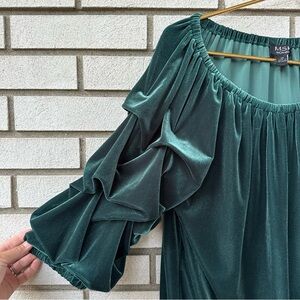 MSK 1X Emerald Velvet Off Shoulder Lantern Sleeve Top Holiday Glam Romantic