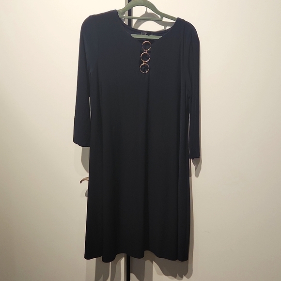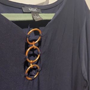 Long sleeve, Navy, polyester dress with gold metal detail