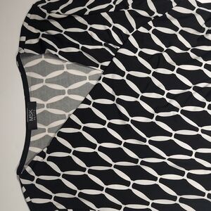 MSK BLACK & WHITE PRINT MIDI DRESS with front layer. No size tag. See photos for additional measurements.
