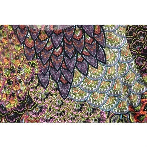 This is a MSK multicolor dress that is a size Medium. It is silky and has long bell sleeves. The colors are really beautiful. The pictures do not do it justice. It is 96% Polyester and 4% Spandex. In great condition.