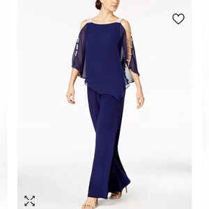 MSK Black Embellished Chiffon Poncho Cold Shoulder Jumpsuit, Women’s Size Small