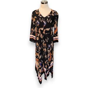 MSK Black Floral Print Handkerchief Hem Dress