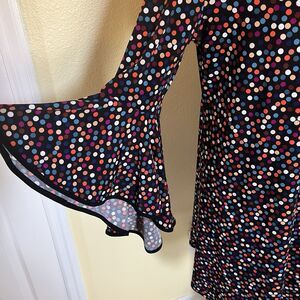 MSK Black Multi Color Polka Dots Bell Sleeve Shift Dress Women's Size L