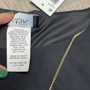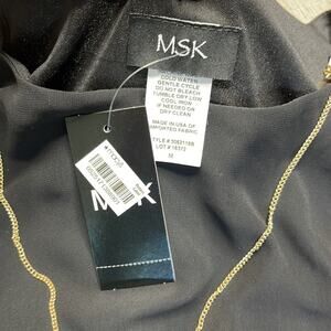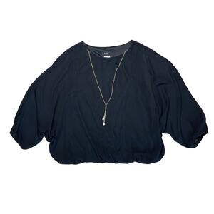 MSK Black Semi Sheer Chiffon Batwing Sleeve Blouse with attached Gold Rhinestone Chain