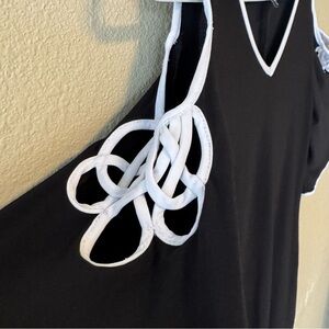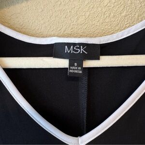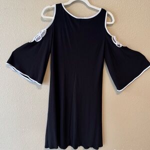 MSK Black White Bell Sleeve Dress Small Cut Out Shoulder Knee Length