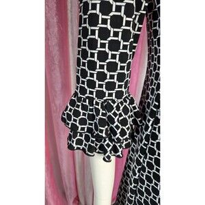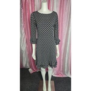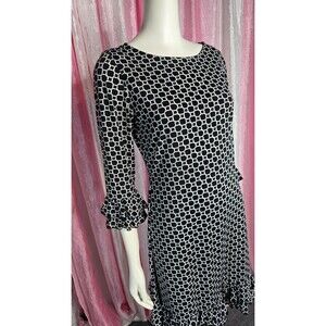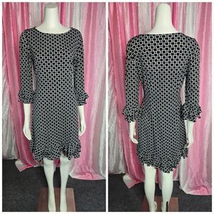 MSK Black White Ruffle Geometric 3/4 Sleeve Dress Size Small