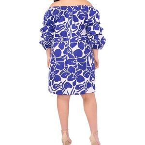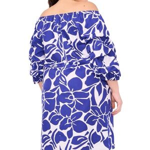 MSK—Show off your radiant style and embrace your curves with this plus size off-the-shoulder dress from MSK, a stunning piece for an elegant look. Stylish off-shoulder dress with bold blue floral pattern. Perfect for any occasion.