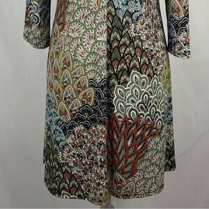 MSK Brown Orange Tan Peacock Print Boho Hippie Festival Dress NWOT Size M