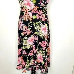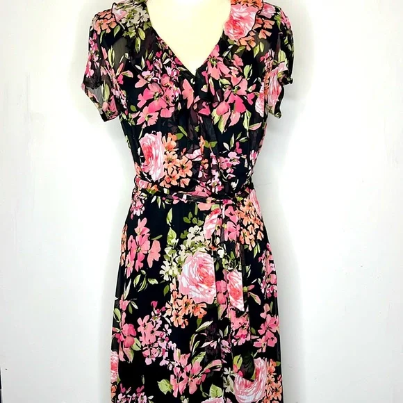 WOMENS SIZE 10 2 piece polyester flutter sleeve dress with separate slip dress, dress pit to pit approximately 20", length approximately 45". Slip dress liner pit to pit approximately 16", length approximately 43", belt waist dress, excellent condition