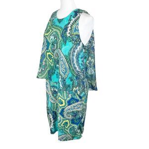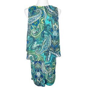 MSK Dress Women 8 Green Blue Paisley All Over Print Fit Flare Sleeveless Casual