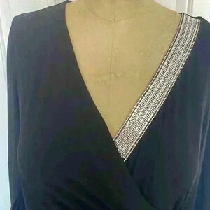 MSK Evening Black Flattering V-neckline W/Rhinestones & cuff details Size L