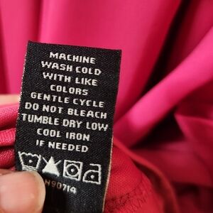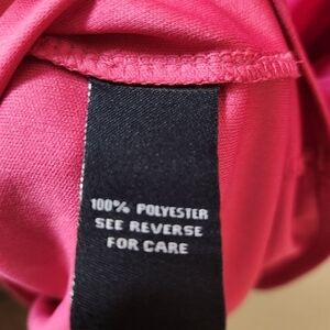 Dtunning hot pink MSK dress. Made from 100% polyester, this dress features a delicate v-neckline with button details and a tie waist for a flattering fit. The ruffle layers add a touch of femininity, making it perfect for any special occasion. The chiffon-like fabric is well-lined for comfort and style.